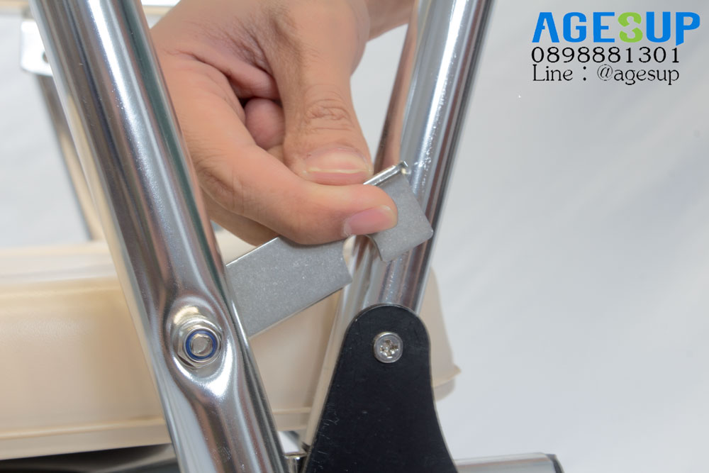 มีสลักล็อคเพื่อไม่ได้ตัวเก้าอี้นั่งถ่ายพับหุบลงมาในขณะมีผู้นั่งใช้งาน เพื่อความปลอดภัยยิ่งขึ้น