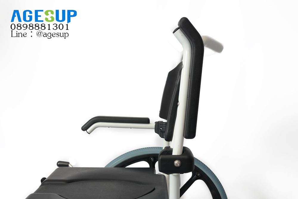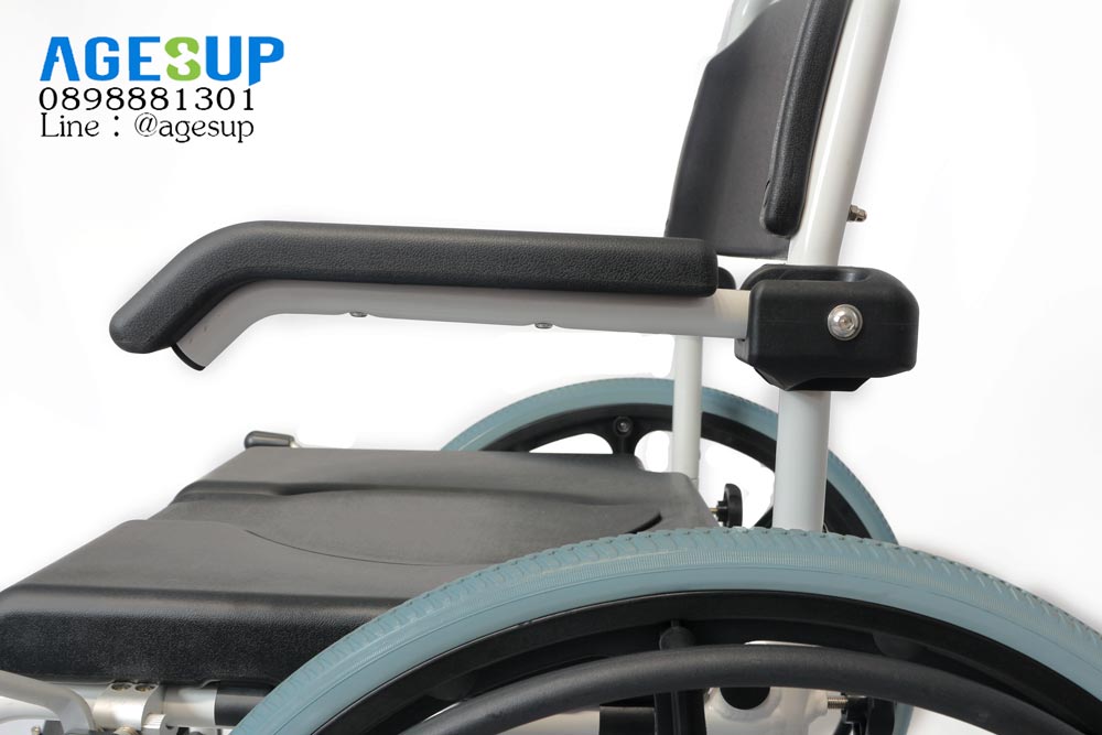 ที่พักแขนสามารถเปิดขึ้นลงได้ ช่วยทำให้สามารถเคลื่อนย้ายตัวผู้ป่วยเข้าหรือออกจากรถเข็นได้ง่ายขึ้น