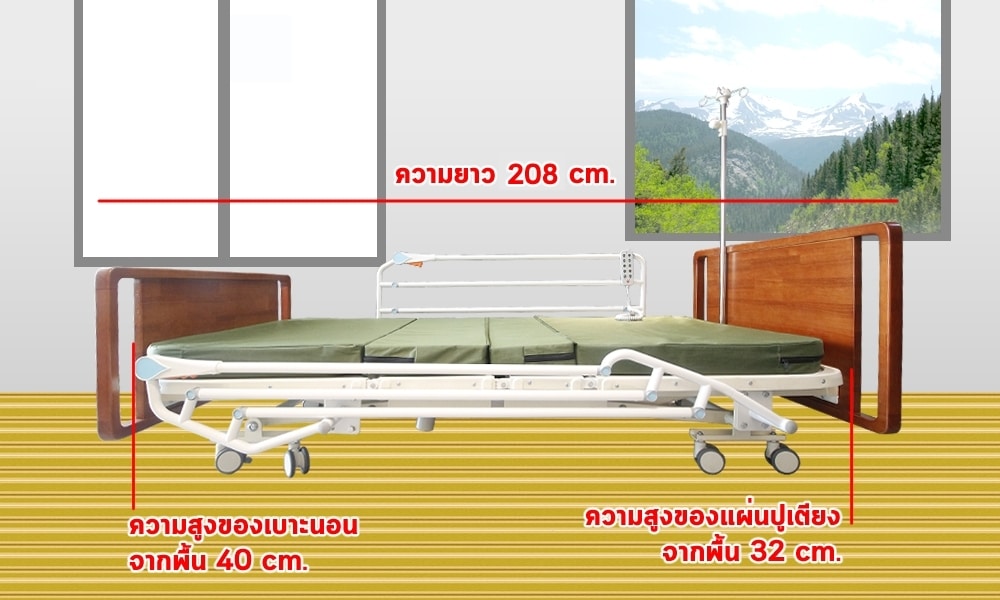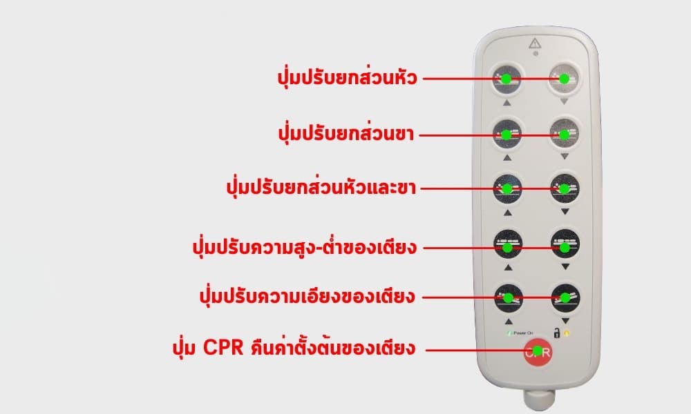 - ใช้งานเตียงด้วยรีโมทคอนโทรลมีฟังค์ชั่นการใช้งาน 5 ไกร์