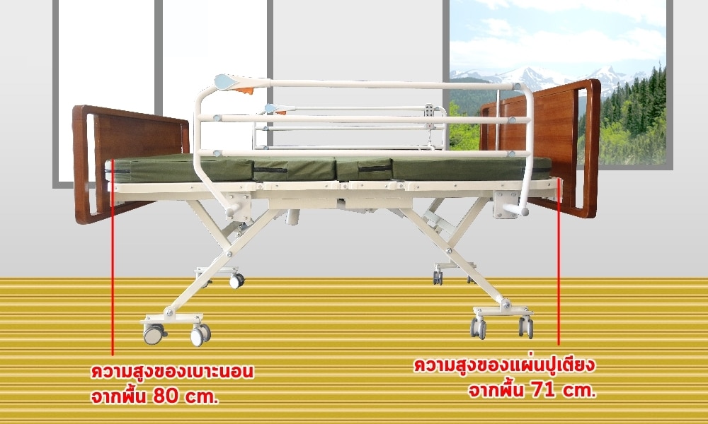 - ความสูงของแผ่นปูเตียง 71 ซม. (ปรับสูงสุด)