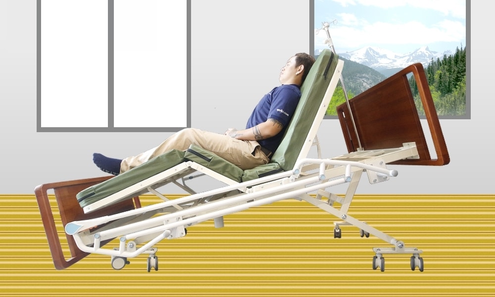 - จุดเด่นของเตียงคือ สามารถปรับเป็นท่านั่งโดยหันตัวเตียงออกด้านข้างของเตียงได้ สะดวกสบายต่อผู้ป่วยได้อย่างมาก