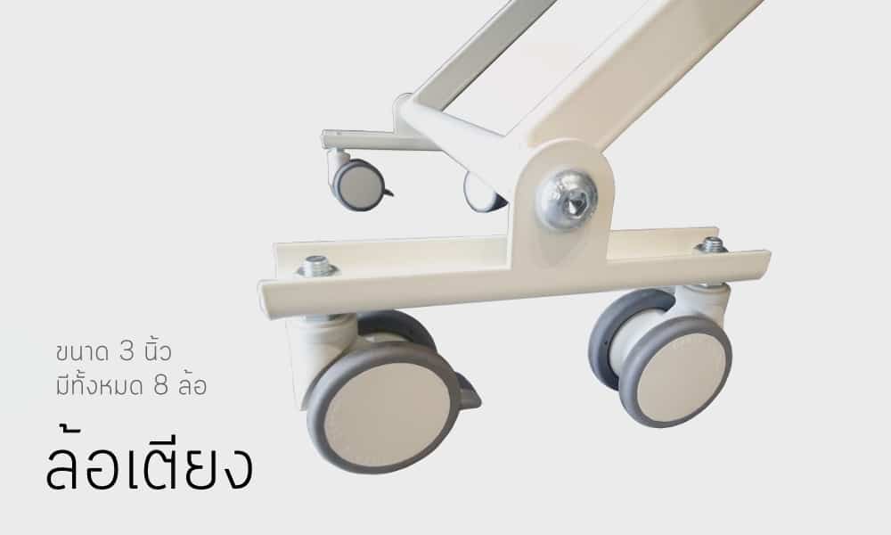 ขนาดล้อ 3 นิ้ว ระบบเบรค Single Lock มีทั้งหมด 8 ล้อ