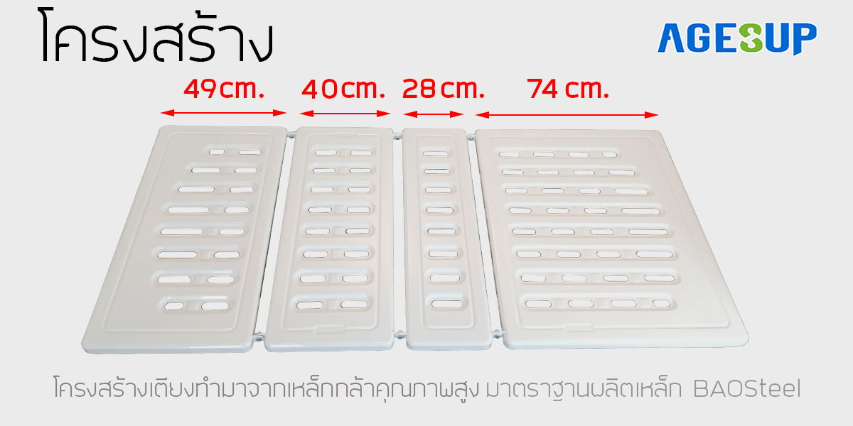 แผ่นปูเตียงทำจากแผ่น BAO Steel เหล็กรีดเย็น Cold-Rolled Steel พร้อมช่องระบายอากาศ มีขนาด 90 ซม.