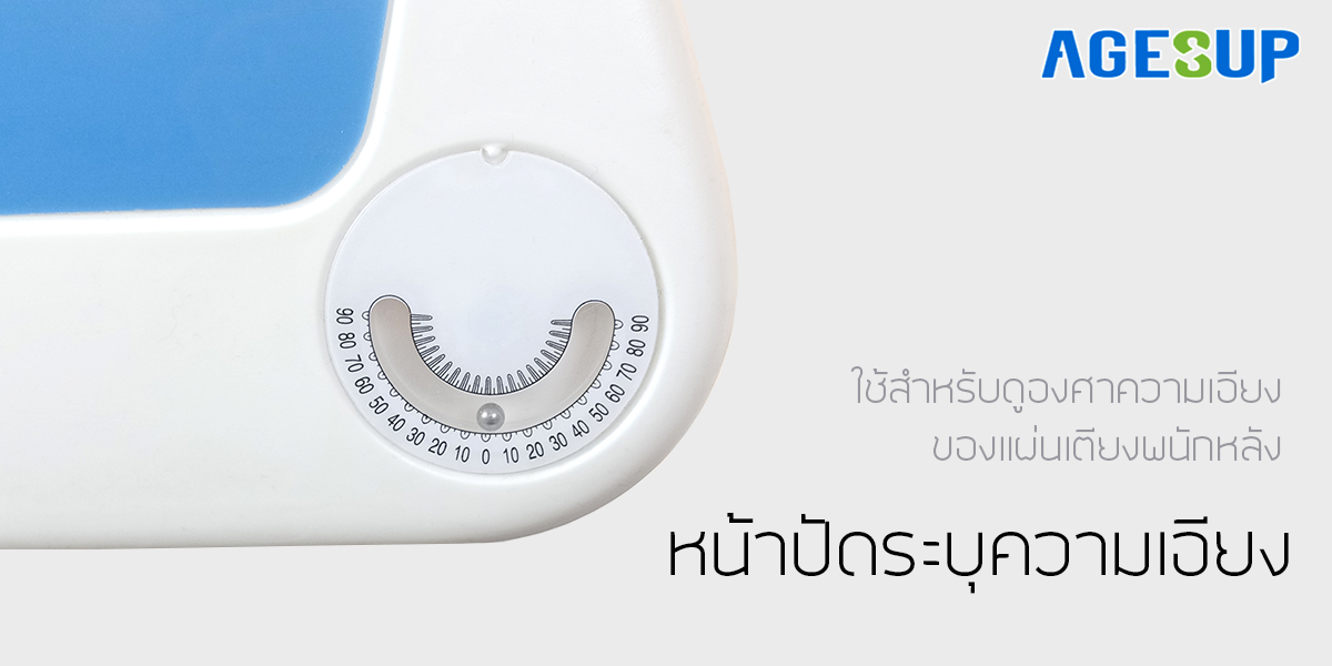 - หน้าปัดระบุความเอียง ใช้สำหรับดูองศาความเอียง ของแผ่นเตียงพนักหลัง
