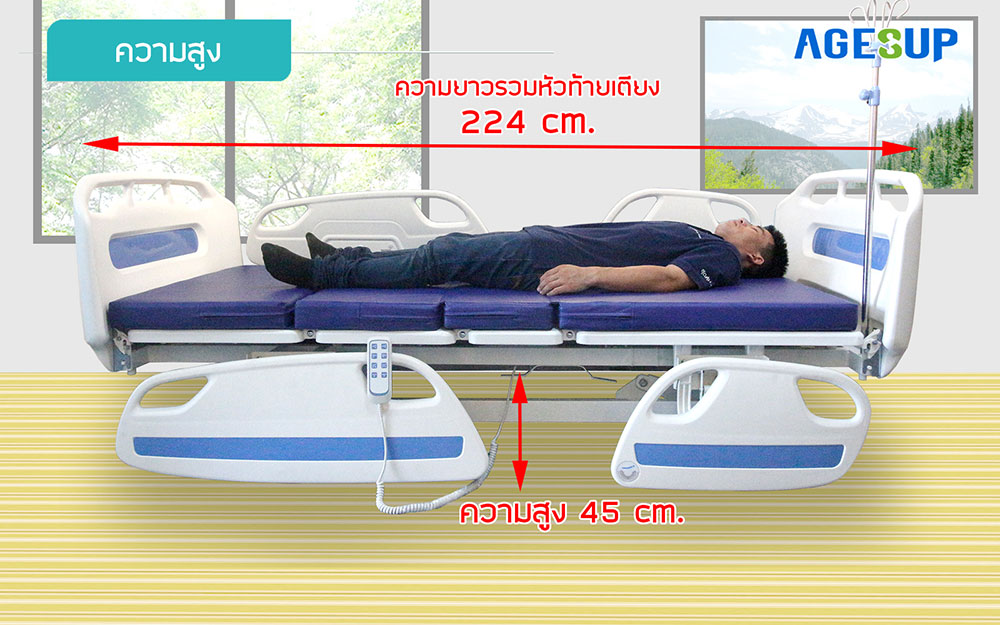 เตียงผู้ป่วยคนชรา แบบไฟฟ้า 3 ไกร์ 4 ฟังก์ชั่น ราวปีกนก รุ่น SK-AD3
