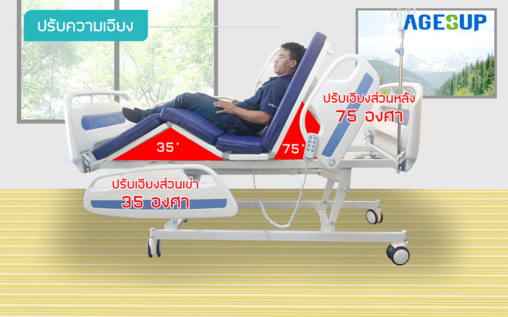 ปรับเอนหลัง ได้ 75 องศา ปรับส่วนขางอเข่า ได้ 35 องศา