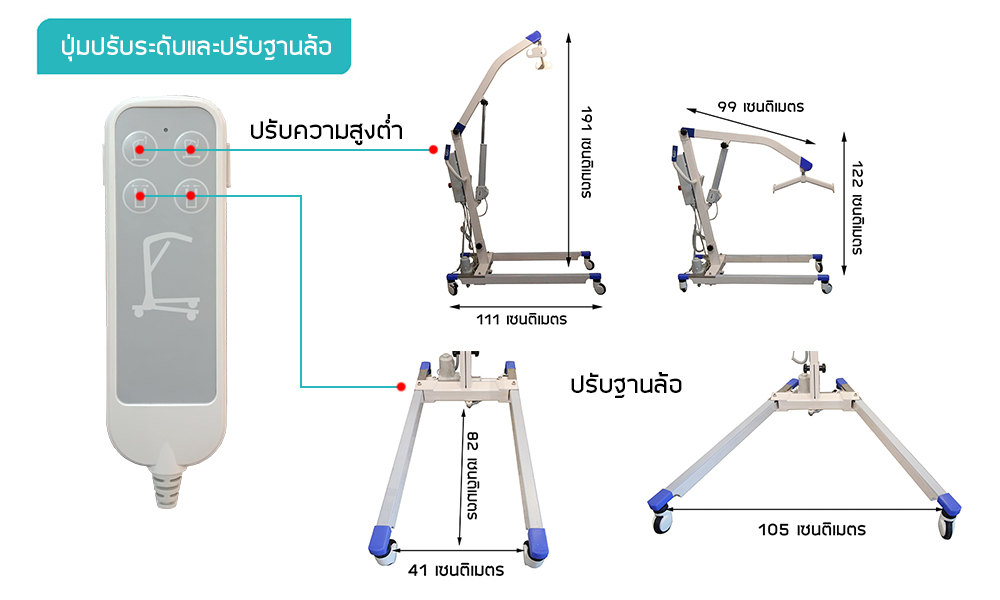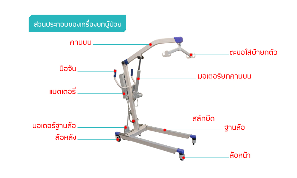 ตัวเครื่องยกช่วยให้เบาแรงในการใช้งาน เพื่อลดภาระของผู้ดูแลในการดูแลผู้ป่วย