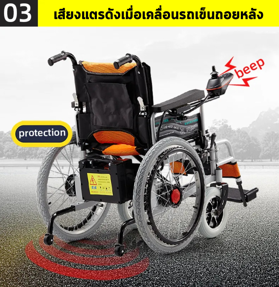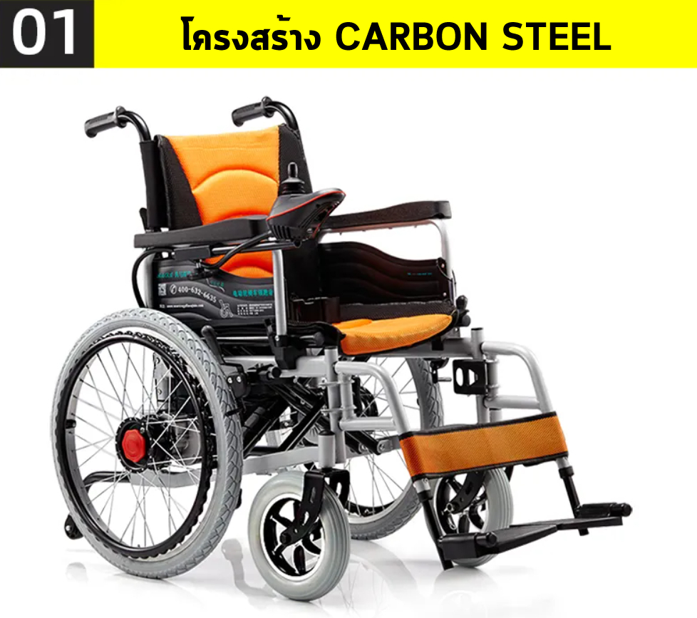 รถเข็นวีลแชร์ไฟฟ้าวัสดุทำมาจากคร์บอน สตีล (Carbon Steal) มีความหนา แข็งแรงทนทาน ที่พักแขนยางสังเคราะห์ ทนทาน เก็บงานประณีต สุดยอดแห่งความคุ้มค่า ด้วยฟังก์ชั่น เปิดที่พักแขน พนักหลังพับได้ ฟูลออฟชั่น เบาะผ้ากันน้ำหนาทน ล้อหลัง 12 นิ้วยางตัน มอเตอร์แบบคู่ใช้ขับเคลื่อนล้อหลัง มีล้อเสริมใช้ป้องกันเวลาวิ่งผ่านเนินหรือทางลาดขั้น รถเข็นมีน้ำหนัก 38 กก. รับน้ำหนักได้ 120 กก.