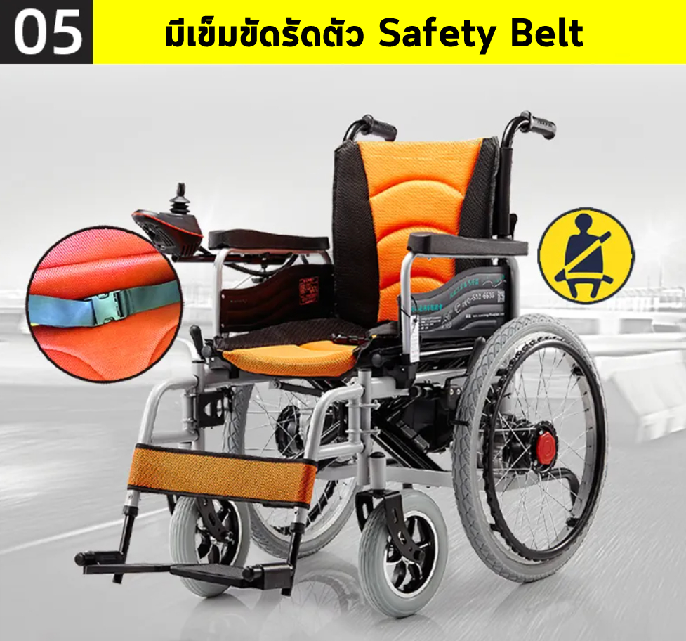 รถเข็นวีลแชร์ไฟฟ้า ผู้สูงอายุ แบบพับได้ รุ่น EW-07 (สีส้ม)