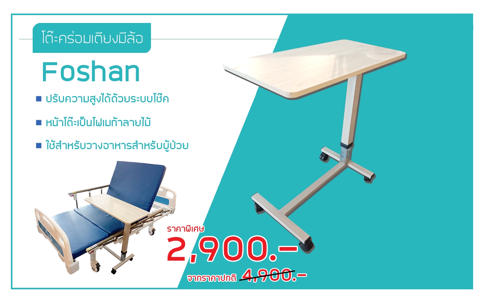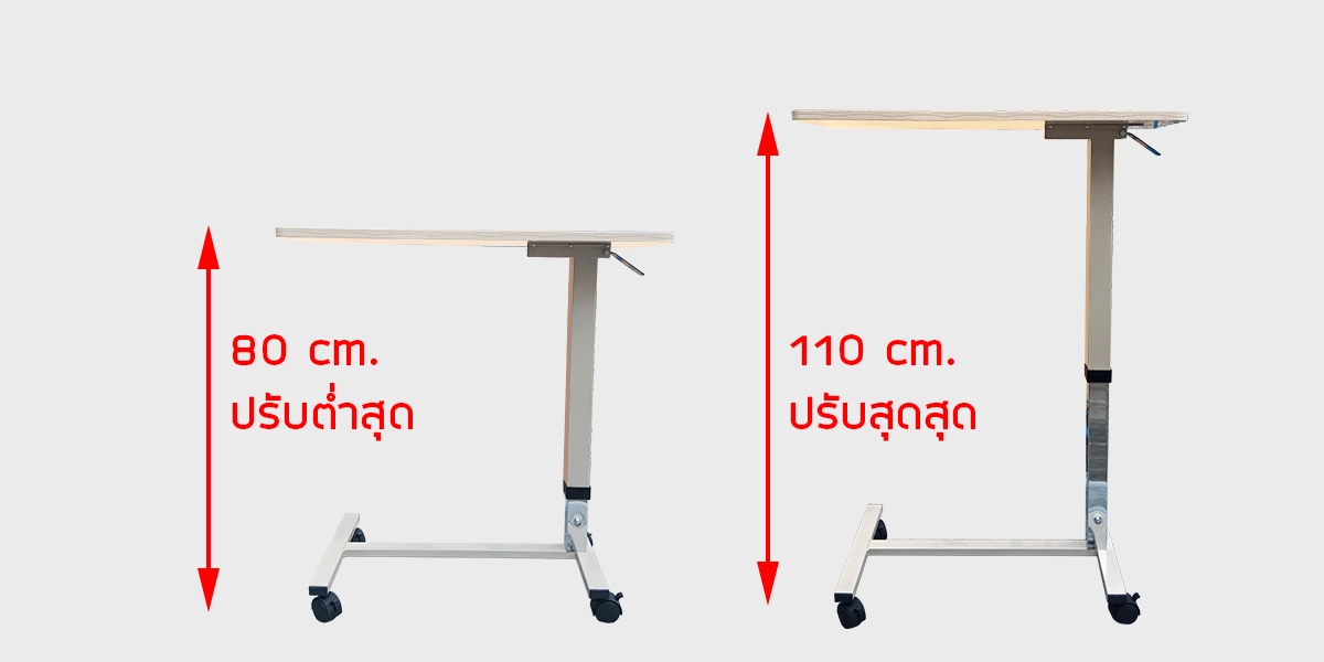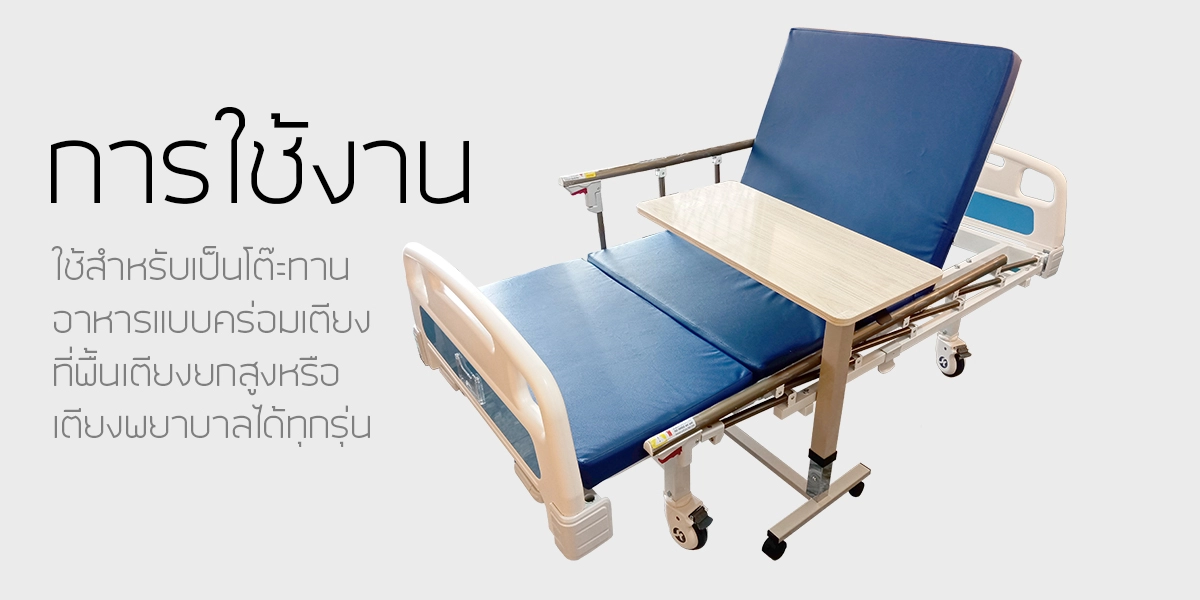 การใช้งาน ใช้เป็นโต๊ะทานอาหารสำหรับเตียงพยาบาลได้ทุกรุ่นที่มีพื้นเตียงยกสูง