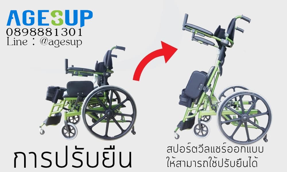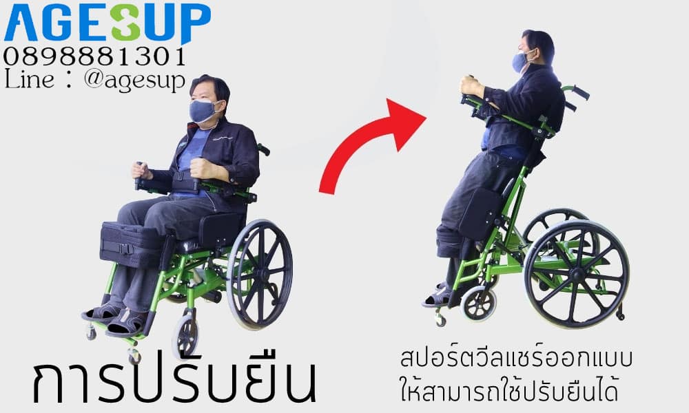 - สปอร์ตวีลแชร์ออกแบบให้สามารถใช้ปรับยืนได้
